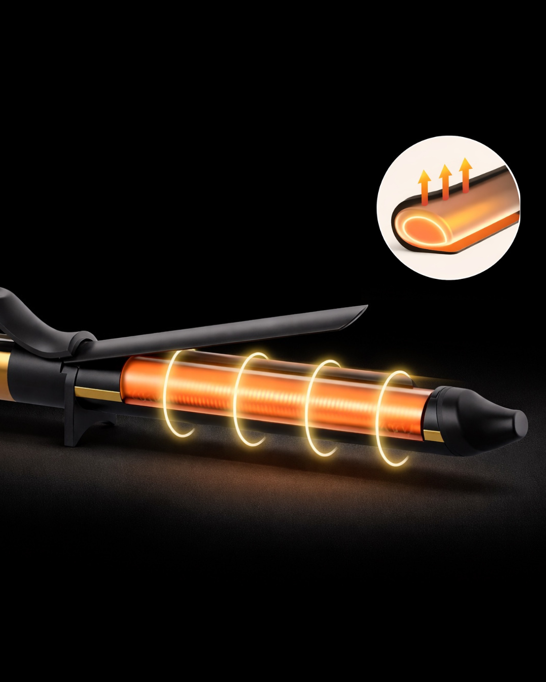 Dankzij de 25 mm professionele, extra lange tang creëer je compacte, salonwaardige krullen die hun vorm behouden, ook aan het einde van de dag. Het grote verwarmingsoppervlak zorgt dat je moeiteloos elke lok in één vloeiende beweging krult, zelfs bij langer haar.